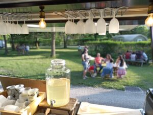 Que ce soit pour un apéro entre amis, une soirée en famille ou simplement pour savourer l’instant, installez-vous autour de notre caravane et laissez-vous porter par la douceur des soirées d’été.